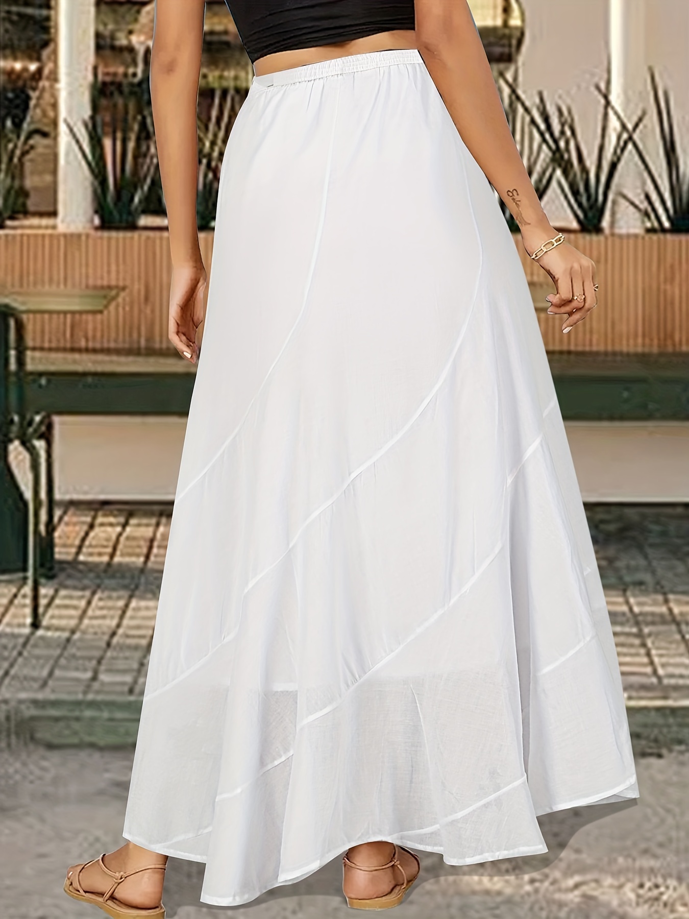 Solid Drawstring Waist Skirt, Elegant Beach Wear Swing Skirt For Spring & Summer, Women's Clothing